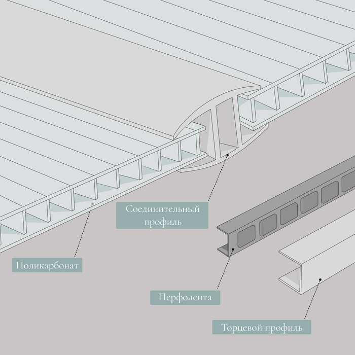 - Подходит для соединения различных типов поликарбоната благодаря универсальной конструкции.