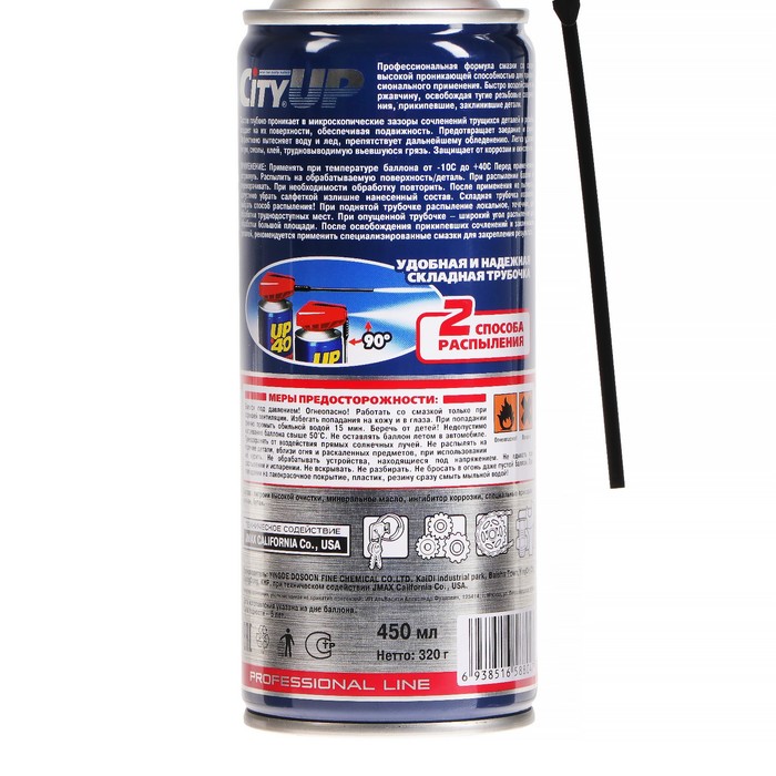 UP-40 - Многофункциональная проникающая смазка.Новейшая формула смазки со сверхвысокой проникающей способностью. Быстро воздействует на ржавчину, освобождая тугие резьбовые соединения, прикипевшие, заклинившие детали.Состав глубоко проникает в микроскопические зазоры сочленений трущихся деталей и резьбы, оседает на их поверхности, обеспечивая подвижность. Предотвращает заедание и скрип. Эффективно вытесняет воду и лед, препятствует дальнейшему обледенению. Легко удаляет битум, смолы, клей, трудновыводимую въевшуюся грязь. Защищает от коррозии и окисления.