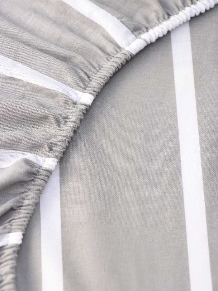 Простыня на резинке 2-спальная «Этель» Gray stripes, 180×200+25 см, поплин