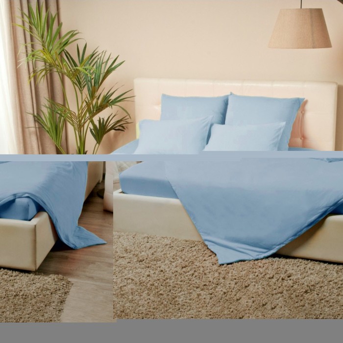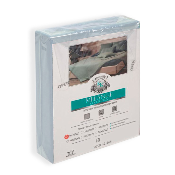 Простыня на резинке 2-спальная KUPU-KUPU, 180×200+20 см, голубая, трикотаж