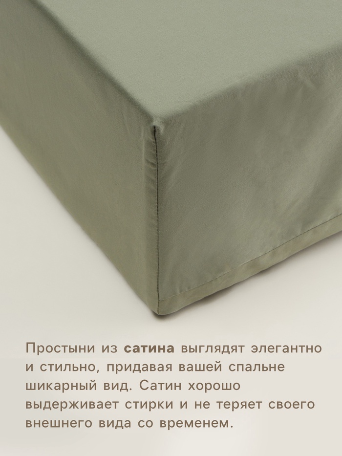 Простыня на резинке 2-спальная SL Home «Олива», 160×200+30 см, оливковая, сатин