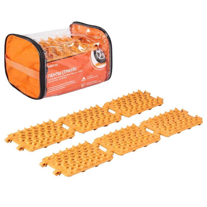Представляет собой пластиковую ленту (полосу), которая имеет решетчатую форму с множеством шипов для обеспечения нескользящей поверхности. В корпусе ленты имеют крепления для соединения их между собой в одну полосу.При езде по бездорожью, особенно при плохих погодных условиях автомобиль часто буксует и застревает, требуется немало усилий, чтобы сдвинуть его с мёртвой точки. С помощью нехитрого приспособления, антипробуксовочных лент Вы сможете быстро и без посторонней помощи вытащить Ваш автомобиль из ямы или грязевого наноса. Каждая из антипробуксовочных лент состоит из трех скрепляющихся между собой делений. Решетчатая поверхность и крепкие соединения антипробуксовочных лент позволяют им быть надежным приспособлением, которое поможет при любых погодных и сезонных условиях. Антипробуксовочные ленты выдерживают вес до 3, 5 тонн, они произведены из сверхпрочного и, в то же время, гибкого пластика, препятствующего скольжению лент. Подложив ленту под буксующее колесо машины, увязшей в грязи, песке или снегу, Вы значительно быстрее и проще преодолеете любое препятствие. Компактное приспособление не займёт много места в Вашем автомобиле.