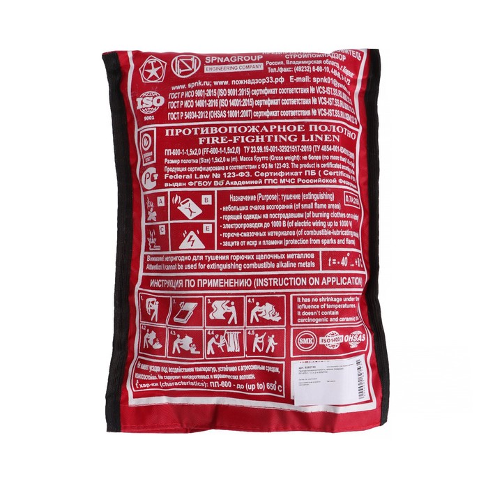 Полотно противопожарное ПП-600-1-1,5х2,0. Продукция сертифицирована в соответствии с Федеральным Законом 123 ФЗ «Технический регламент о требованиях пожарной безопасности». Кошма противопожарная ПП-600-1-1,5х2,0