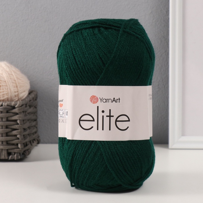 Пряжа для вязания спицами, крючком YarnArt, Elite, 100% акрил, 300 м/100 г, (590 т. зелёный)