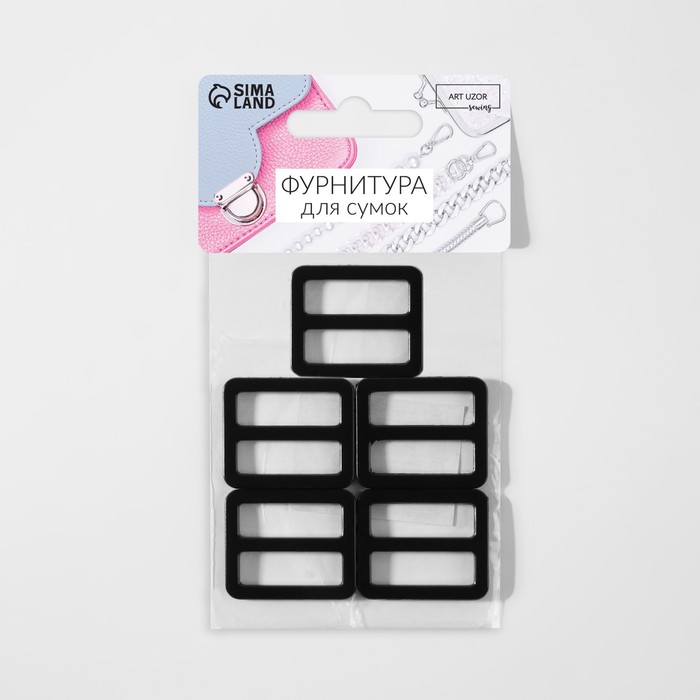 Пряжка регулирующая, двухщелевая, вн. ширина=25 мм, s=3 мм, 5 шт., матовая, чёрная