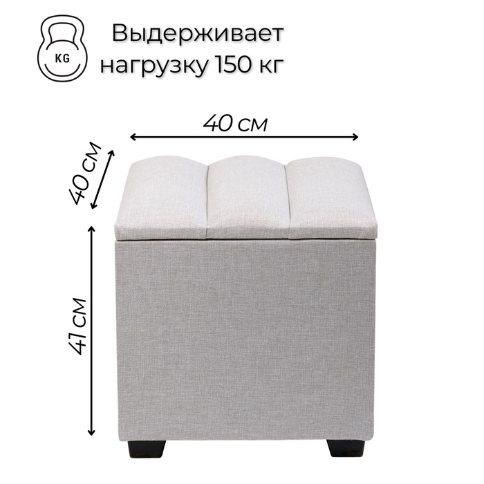 Пуф «Дара», с ящиком, 400×400×410 мм, рогожка, цвет светло-серая