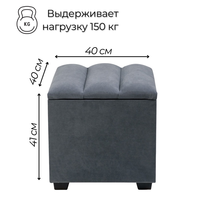 Пуф «Дара», с ящиком, 400×400×410 мм, велюр, цвет серый