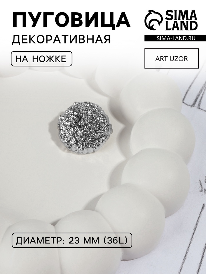 Пуговица на ножке «Песок», d = 23 мм, цвет серебряный