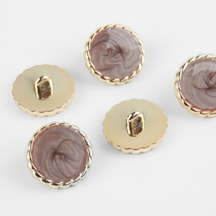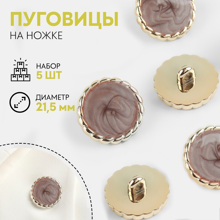 Эти пуговицы на ножке сочетают теплый бежевый тон с золотистым отливом, подходя к натуральным тканям и сложным оттенкам. Они приподнимаются над материалом, оставляя пространство для плотных слоев одежды. Пять штук в наборе хватает на стандартную блузку или рубашку с одной запасной деталью.