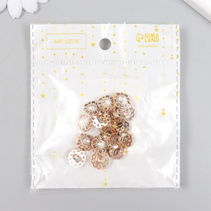Пуговицы пластик для творчества на ножке "Цветок со стразой" набор 15 шт золото 1,2х1,2 см