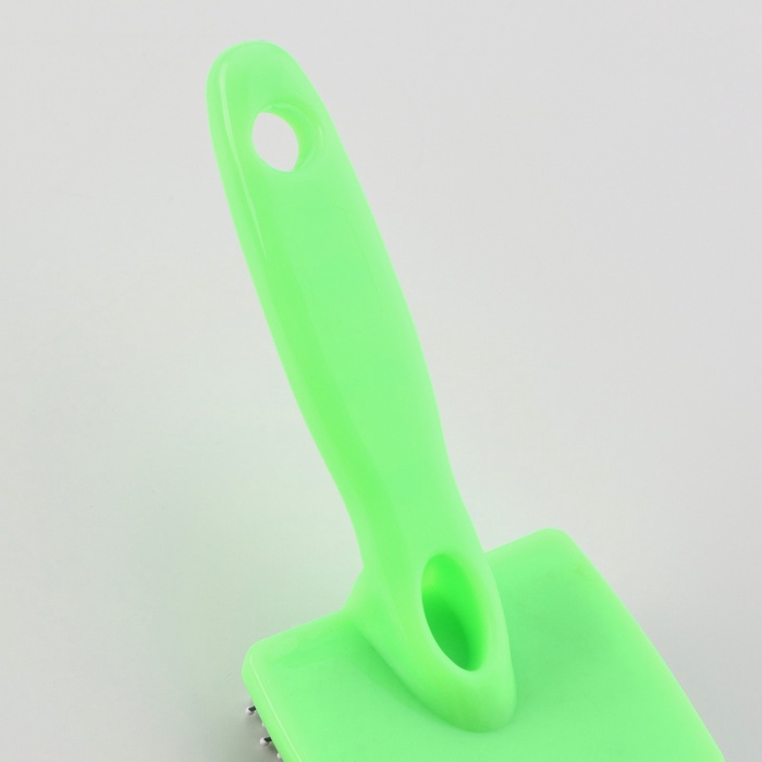 Пуходерка предназначена для вычесывания животных. Пуходерка качественно удаляет отмерший пух, не давай образовываться колтунам на шерсти собаки или кошки, не затрагивая и не повреждая основной волос, а также удаляет грязь и отмершие частички кожи, придавая шерсти ухоженный, блестящий вид. Регулярное использование поможет предотвратить образование колтунов и спутывание шерсти. Расчёсывание стимулирует рост новой шерсти, распределяет естественную жировую смазку по коже животного.