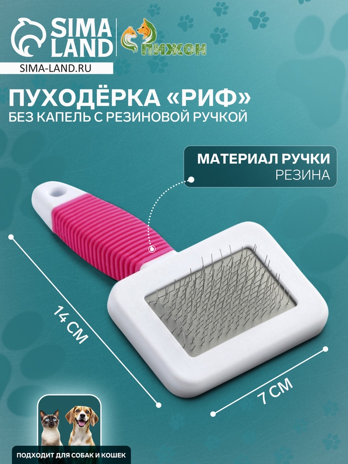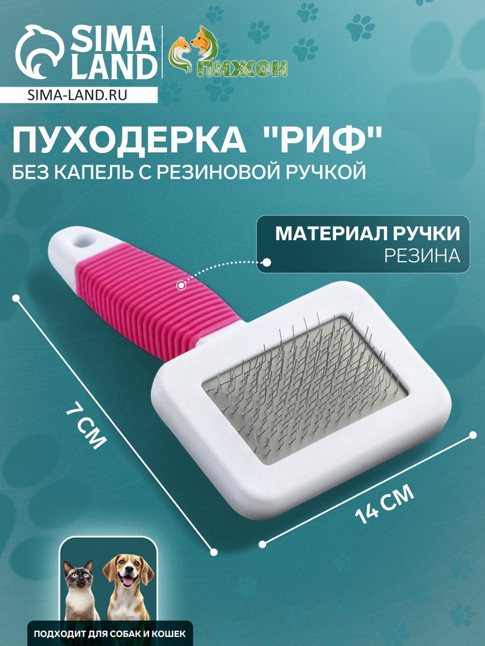 Изделие удобно лежит в руке и не причиняет дискомфорта животному при вычесывании.