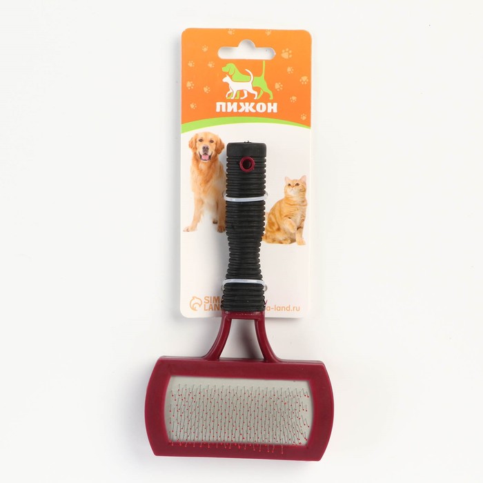 Изделие удобно лежит в руке и не причиняет дискомфорта животному при вычесывании.