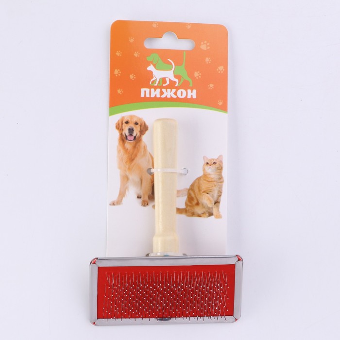 Изделие удобно лежит в руке и не причиняет дискомфорта животному при вычесывании.