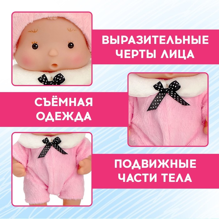 - Костюмчик и шапочка полностью снимаются, поэтому пупса можно купать.