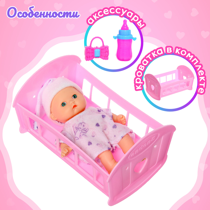С милым пупсиком детские игры в дочки-матери станут веселей и увлекательней. Аксессуары разнообразят сюжеты, девочка будет заботиться о малыше: покормит его из бутылочки, отправится с ним на прогулку и уложит спать в кроватку.