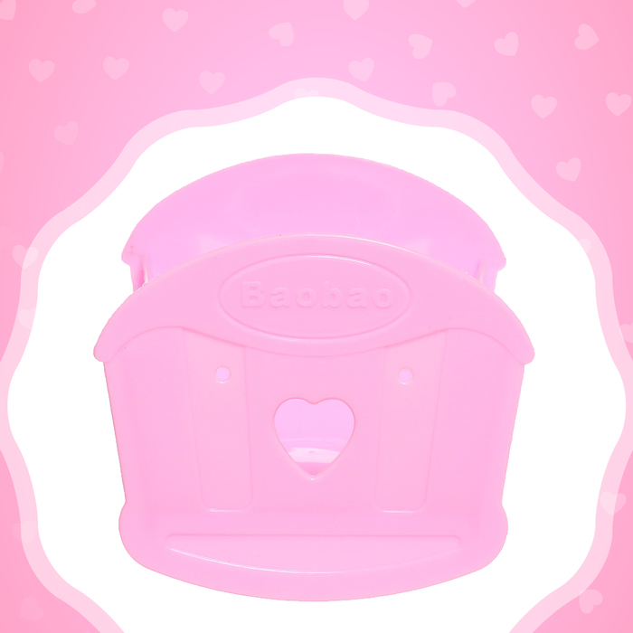 Все предметы выполнены из пластика с использованием безопасных красителей. Кроватка устойчивая благодаря крепкому каркасу. Высота — 8 см.
