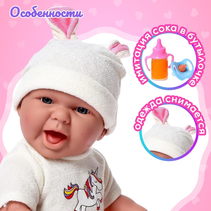 - В бутылочке жидкость налита между стенками — реалистично имитирует напиток. Бутылочка не открывается, соска в рот не вставляется.