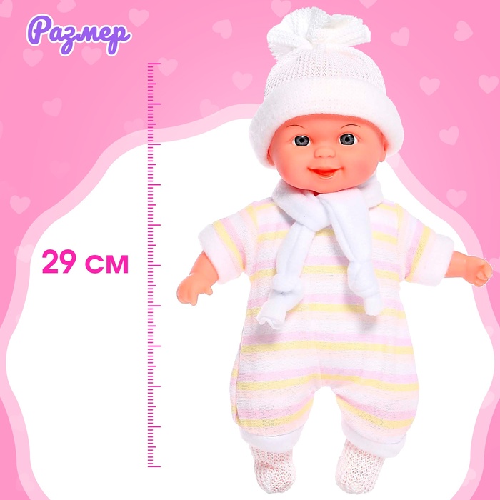 Одежда у пупса снимается. Его высота — 29 см.