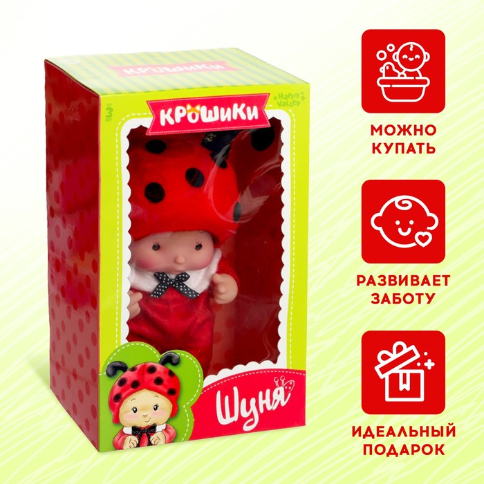 Знакомьтесь, это Шуня! Яркий и озорной, как настоящая божья коровка. С ним ребёнок придумает множество сказочных сюжетов. Игрушка будет ярким аксессуаром для детской комнаты.