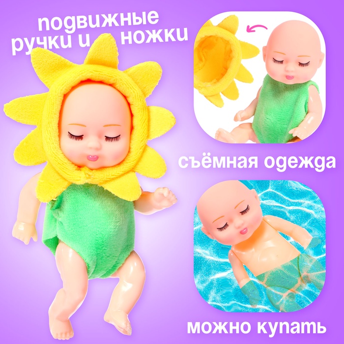 - У пупсов подвижные ручки и ножки, съёмная одежда.