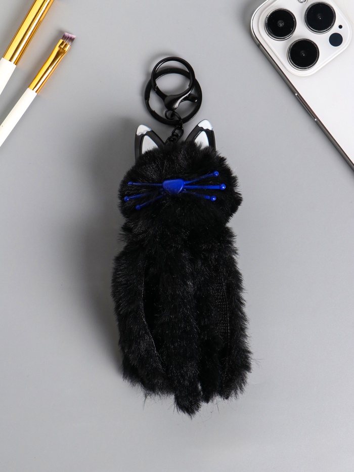 Пушистик на кольце "Чёрный кот" 18х5х5 см