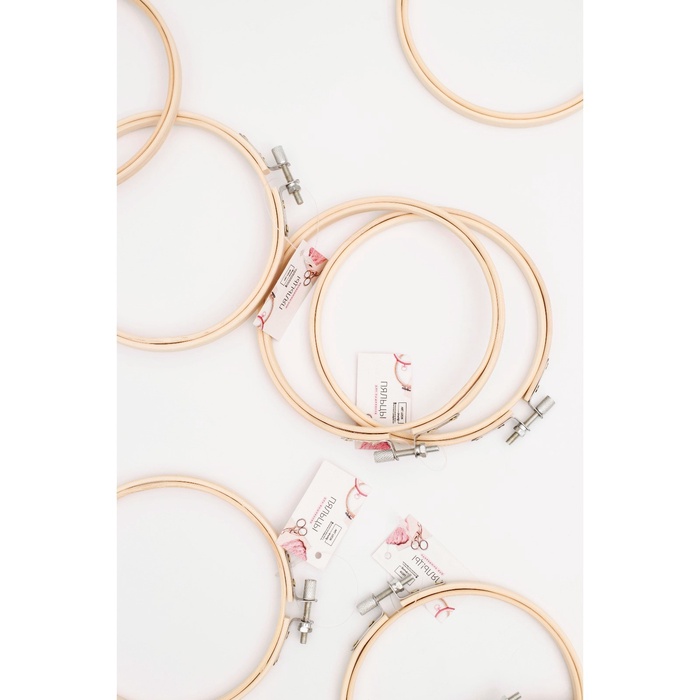 Натягивайте материал на деревянные пяльцы и закрепляйте его с помощью регулировочного винтика. Приспособление очень лёгкое, поэтому оно удобно в обращении. Благодаря текстуре дерева пяльцы не выскользнут из рук, а ткань будет надёжно закреплена.