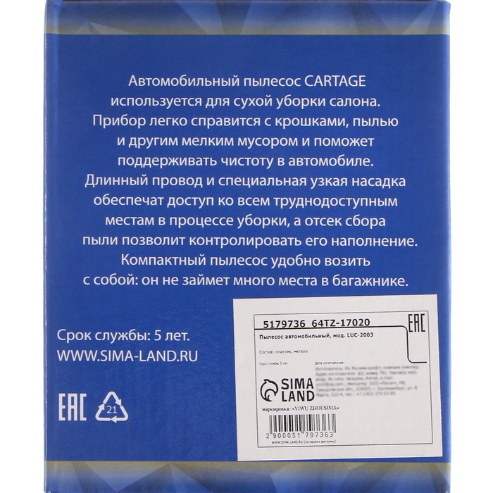 Пылесос автомобильный идеален для уборки салона автомобиля. Дополнительно Мощность 140 Вт и 5 универсальных насадок позволяют собрать пыль, песок, пепел даже из самых труднодоступных мест салона. Питание от бортовой электросети легкового автомобиля 12В позволяет пользоваться пылесосом в любом удобном для вас месте. Компактный размер позволяет хранить пылесос в багажнике автомобиля.