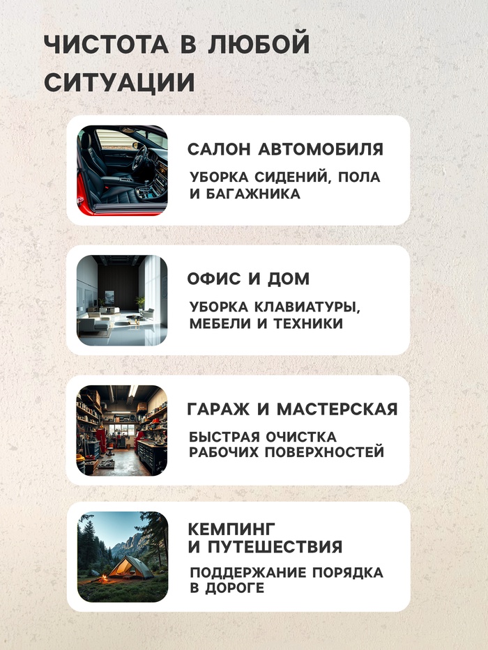 Пылесос автомобильный CARTAGE идеален для уборки салона автомобиля. Мощность 120 Вт и 3 универсальные насадки позволяют собрать пыль, песок, пепел даже из самых труднодоступных мест салона. Питание от бортовой электросети легкового автомобиля 12В позволяет пользоваться пылесосом в любом удобном для вас месте. Компактный размер позволяет хранить пылесос в багажнике автомобиля. Встроенный светодиод облегчит уборку в темных уголках салона.