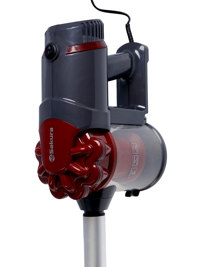 Пылесос Sakura SA-8322R, вертикальный, 800 Вт, 1л, 79дБ, 4м, 4 насадки, красно-серый