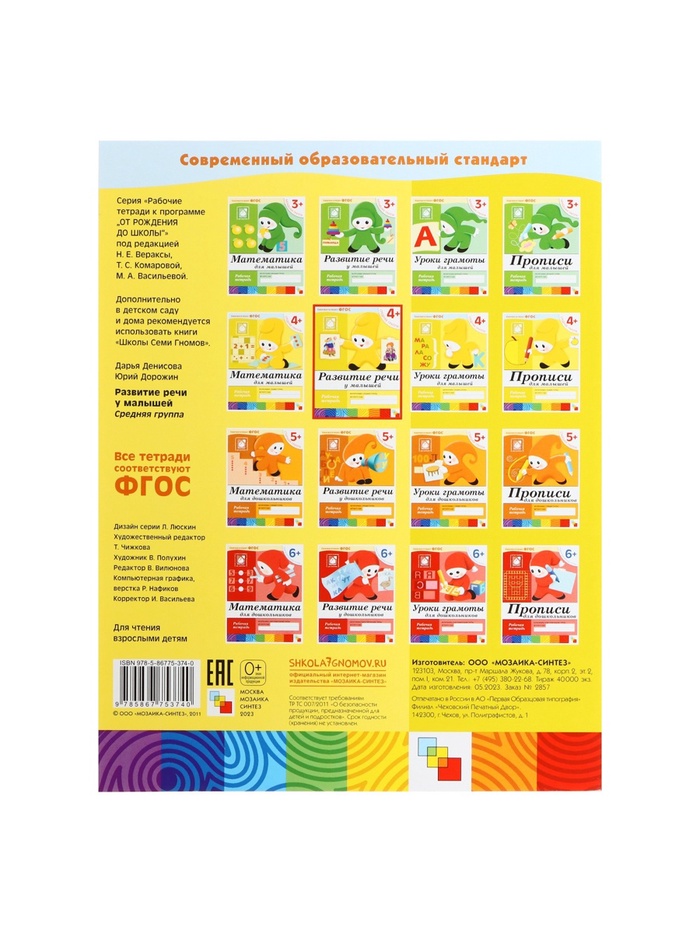 Рабочая тетрадь «Развитие речи у малышей. Средняя группа» содержит задания, которые научат ребёнка правильно употреблять предлоги, давать предметам характеристики, называть действия.