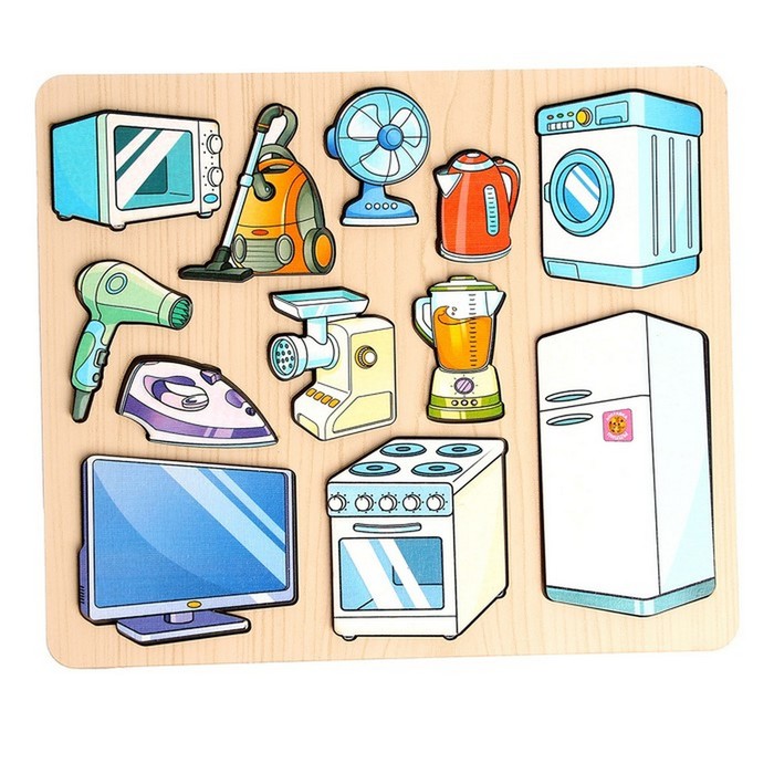 Рамка-вкладыш «Бытовая техника» — эта красочная игрушка не только увлечёт ребёнка надолго, но и поможет ему в обучении.