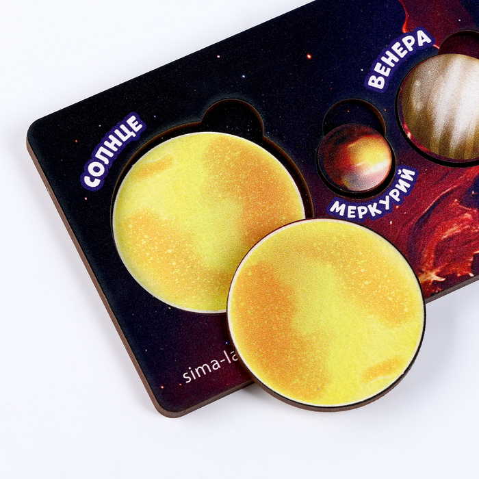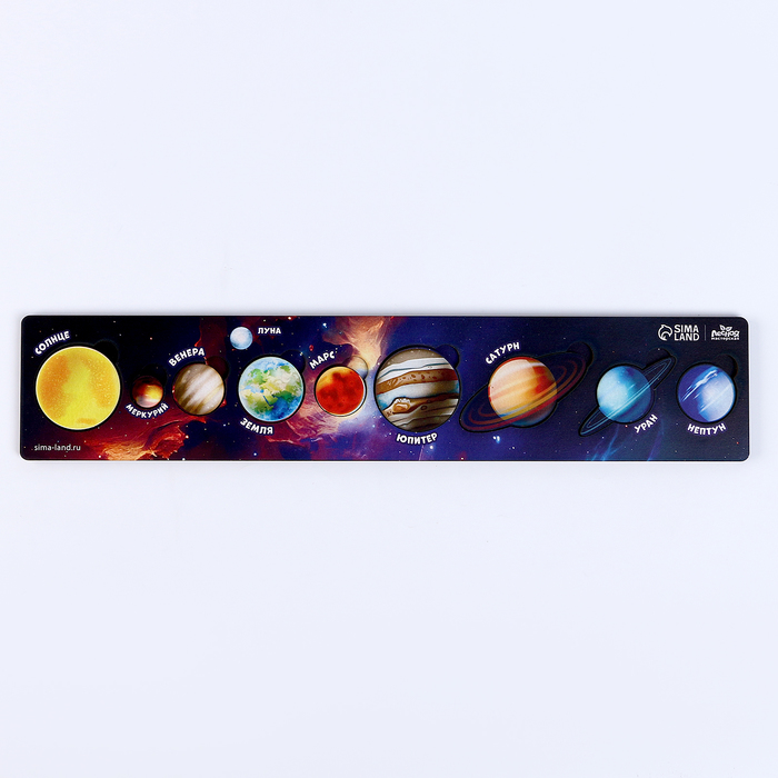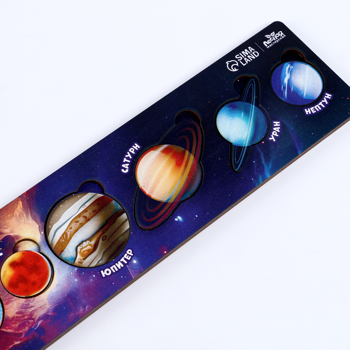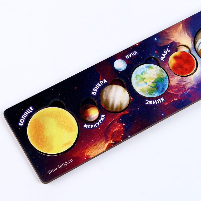 Деревянная головоломка познакомит кроху с солнечной системой. Помогите малышу найти для каждой планеты подходящее место в рамке. Вместе обсудите, какая планета самая большая, а какая маленькая. Проговорите названия планет и их порядок от солнца. А на какой планете мы живём и как далеко она от солнца?