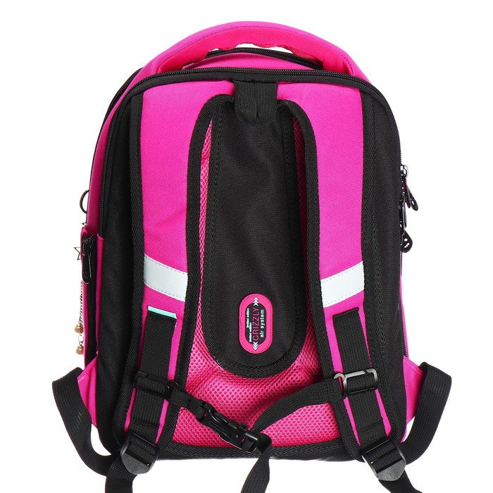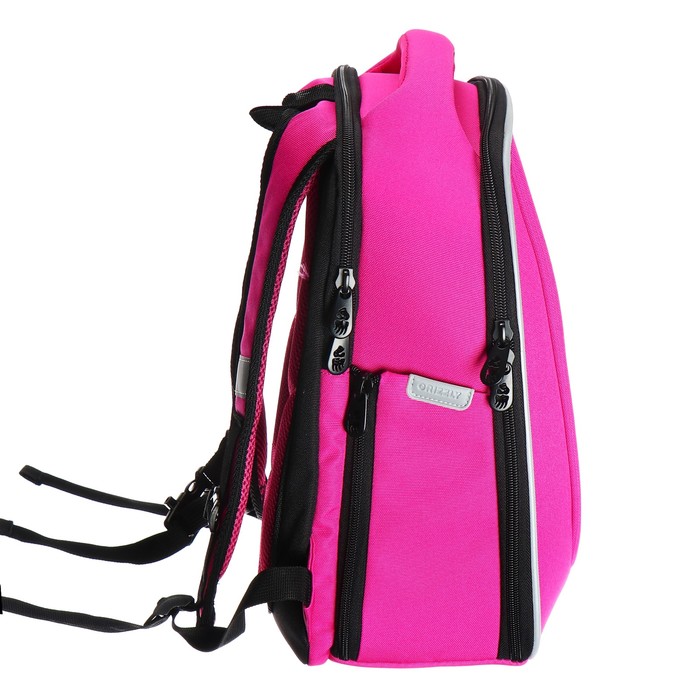 У школьного рюкзака формованная лицевая часть, жесткая анатомическая спинка и жесткое дно на ножках. Содержимое надежно защищено. А еще такая конструкция равномерно распределяет нагрузку на спину. Чтобы не уставали руки и плечи, мы сделали широкие лямки и нагрудную стяжку. Конструкция детской сумки не деформируется при нагрузке и создает надежную защиту содержимого. У школьного рюкзака два отделения. Основное отделение разбито на три отсека: для книг, тетрадей и папок А4, есть карман из сетки на молнии. Дополнительное жесткое отделение не даст помяться ценным вещам. Для безопасности в темное время суток мы добавили со всех сторон светоотражающие элементы. За счет водо- и грязеотталкивающей пропитки ранец долго остается как новый. Если он все же чем-то испачкался, мы рекомендуем ручную стирку в холодной воде.