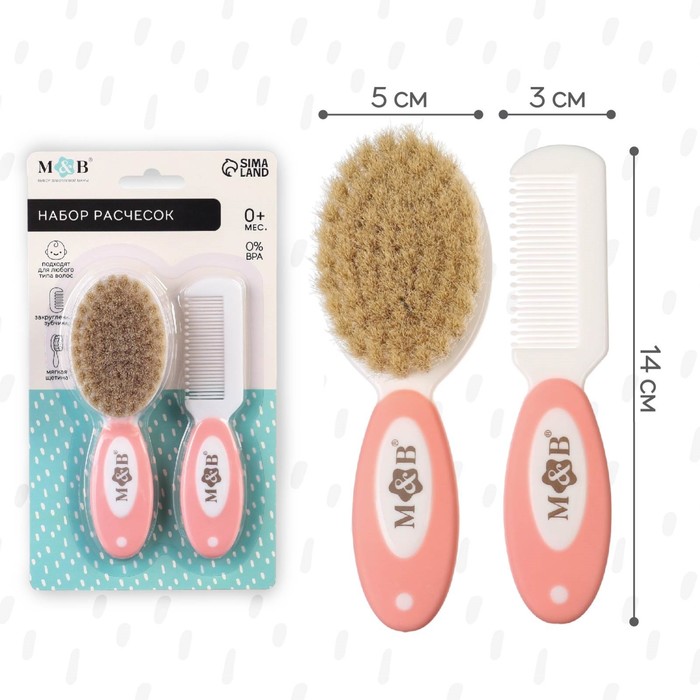 Расческа-щетка с мягкой, натуральной щетиной и удобная расческа с закругленными зубчиками предназначены для малышей с первых дней жизни. Мягкая пушистая щетка имеет удобную эргономичную ручку, улучшает кровообращение кожи головы, не царапая её. Нежный массаж расслабляет и успокаивает перед сном, а стимуляция волосяных луковиц ускоряет рост первых волос малыша. Щетка с мягким ворсом позволит пригладить волосики и придать им аккуратный вид. А с помощью расчески с частыми закругленными зубчиками удобно расчесывать запутавшиеся и скатавшиеся волосы. Изделия изготовлены из безопасного материала - не содержат бисфенол А.