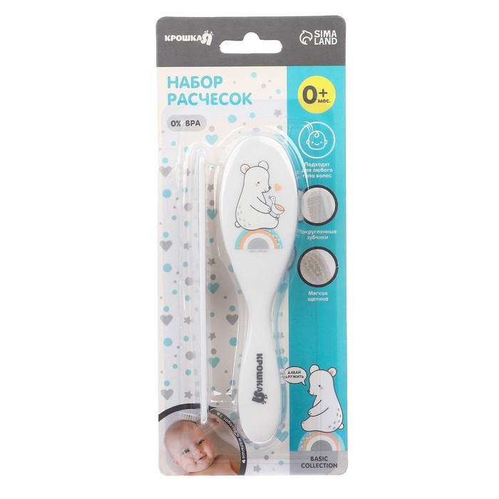 Расческа-щетка с мягкой щетиной и удобная расческа с закругленными зубчиками предназначены для малышей с первых дней жизни.