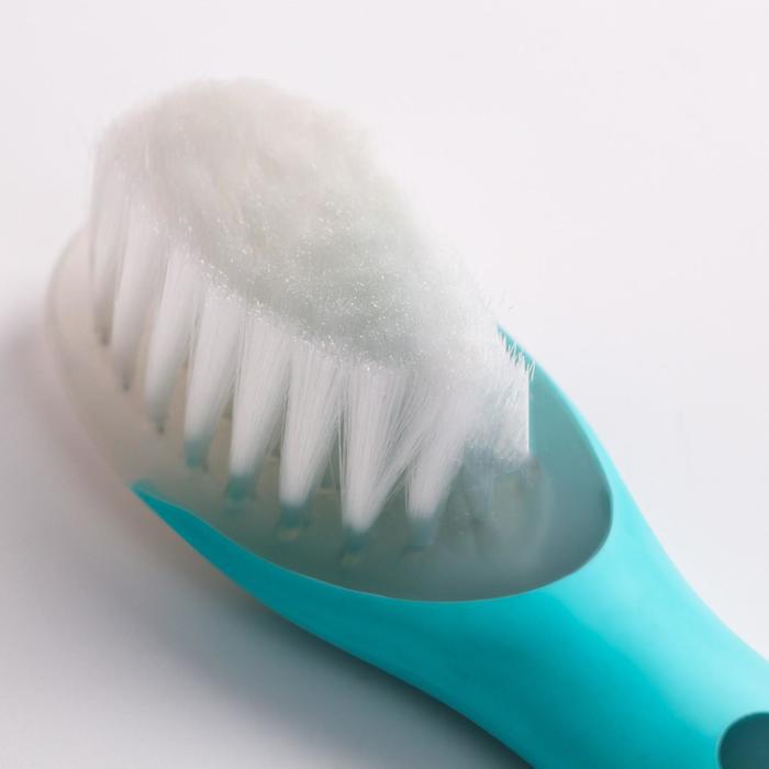 Мягкая пушистая щетка имеет удобную эргономичную ручку, улучшает кровообращение кожи головы, не царапая её. Нежный массаж расслабляет и успокаивает перед сном, а стимуляция волосяных луковиц ускоряет рост первых волос малыша. Щетка с мягким ворсом позволит пригладить волосики и придать им аккуратный вид. А с помощью расчески с частыми закругленными зубчиками удобно расчесывать запутавшиеся и скатавшиеся волосы.