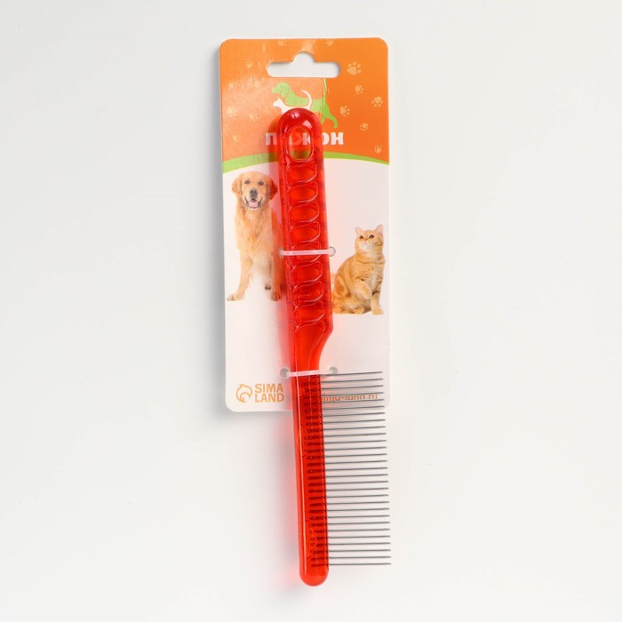 Расческа предназначена для тщательного ухода за шерстью кошек и собак. Она легко удаляет частички пыли и грязи с шерсти животного, не повреждая поверхность кожи и не травмируя структуру шерсти.