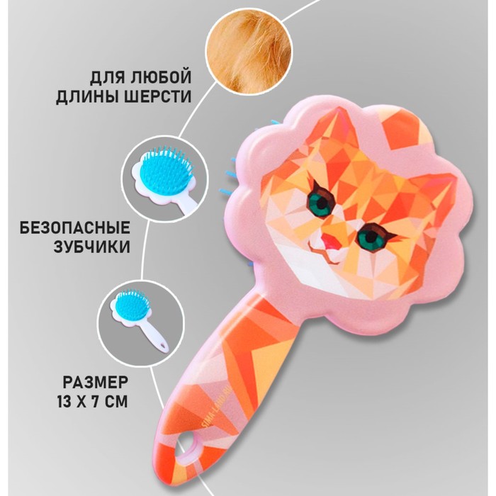 Массажная щётка предназначена для расчёсывания кошек. Подходит для питомцев с шерстью любой длины. Зубья с закруглёнными концами делают процедуру безопасной. Расчёска улучшает кровообращение и делает шерсть вашего питомца мягкой и блестящей.