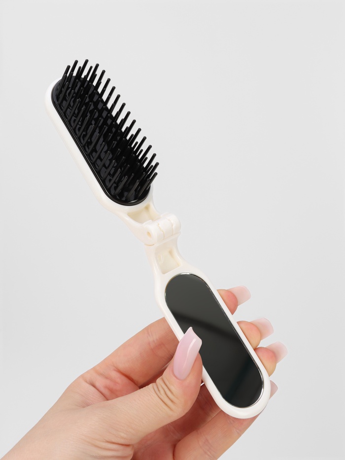 Создание идеального образа так же важно, как и его поддержание в течение всего дня. Воспользуйтесь этим удобным аксессуаром, чтобы за считанные секунды подправить макияж или причёску. Удобная форма и компактный размер расчёски позволят вместить её даже в самую миниатюрную сумочку, а крышка с зеркалом защитит подклад от случайной порчи.