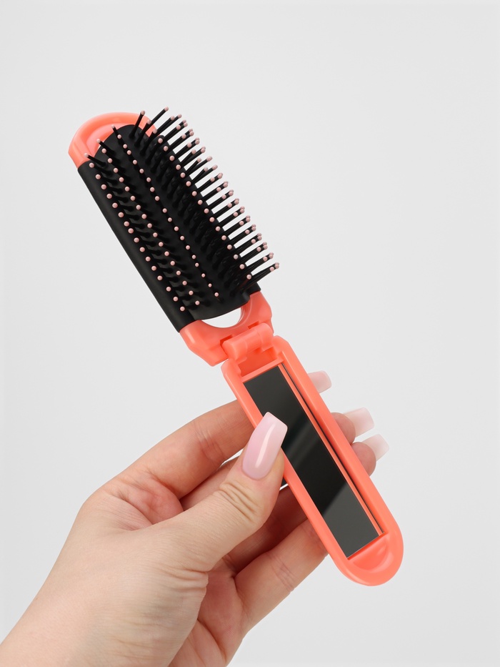 Создание идеального образа так же важно, как и его поддержание в течение всего дня. Воспользуйтесь этим удобным аксессуаром, чтобы за считанные секунды подправить макияж или причёску. Удобная форма и компактный размер расчёски позволят вместить её даже в самую миниатюрную сумочку, а крышка с зеркалом защитит подклад от случайной порчи.