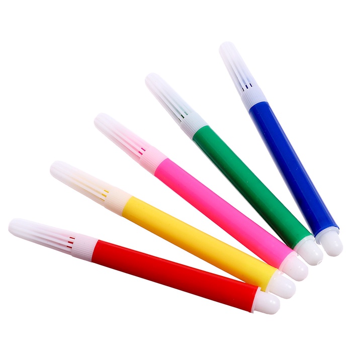 - В набор входят 5 фломастеров разных цветов.