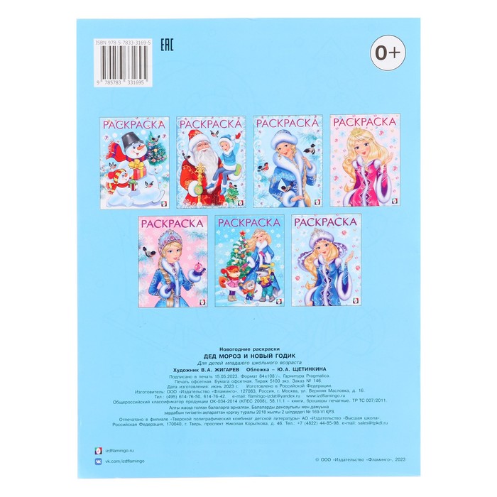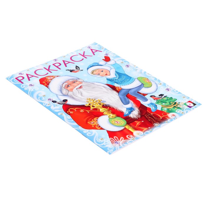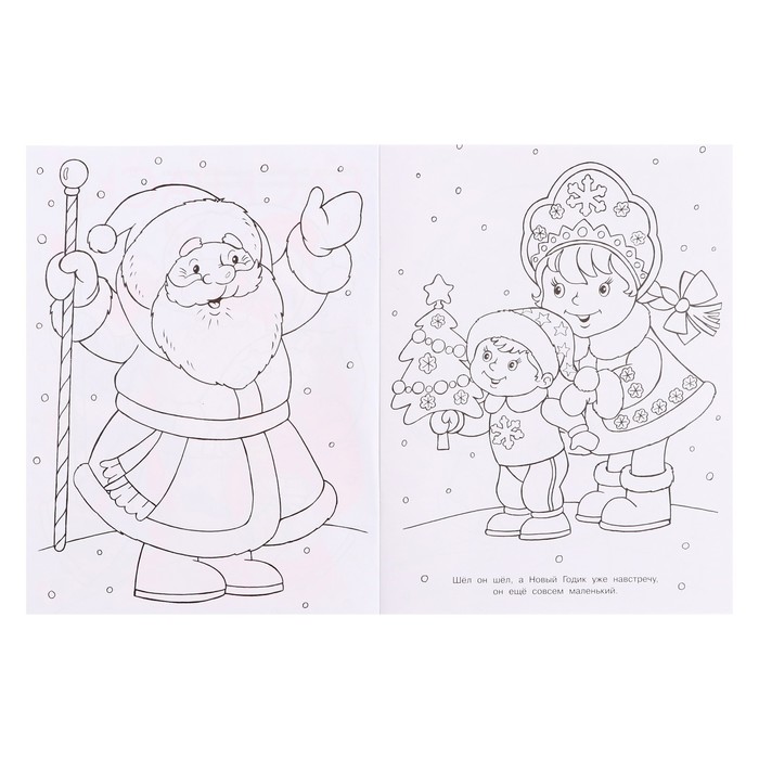 - 16 страниц с крупными изображениями Деда Мороза, ёлки и других новогодних символов.