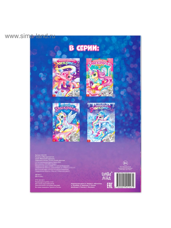 Раскраска «Мир единорогов» — книга с контурными картинками волшебных пони. Малышка сможет их раскрасить карандашами, красками или фломастерами. Страницы и обложка выполнены из бумаги.