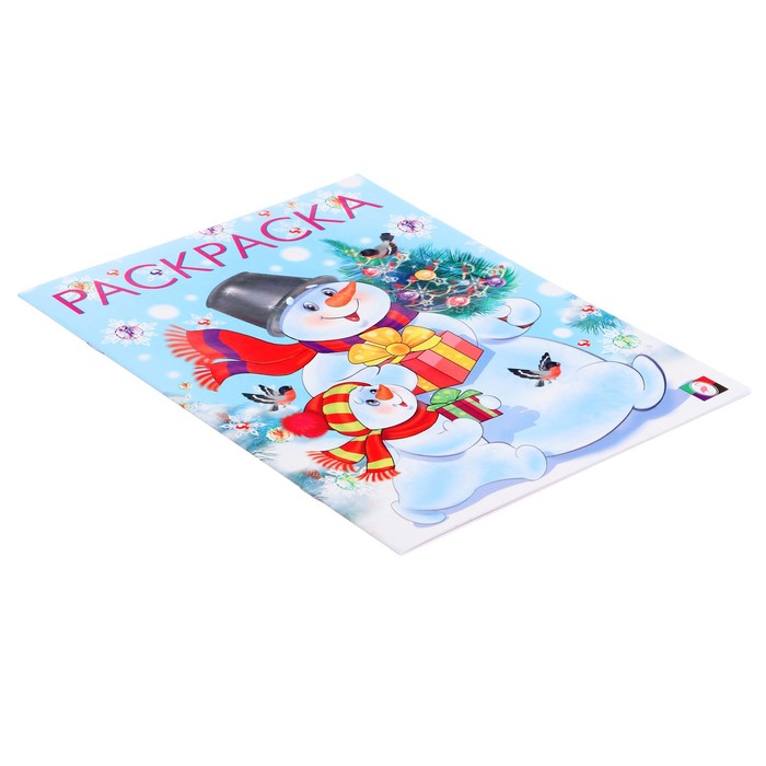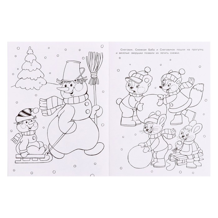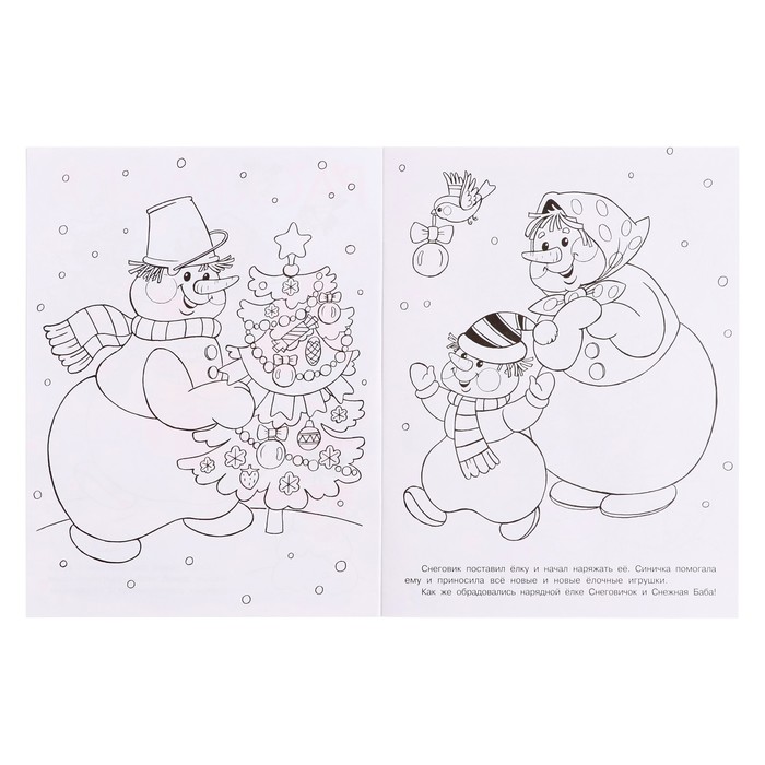 - 16 страниц с крупными изображениями снеговиков, зимних пейзажей и других новогодних символов.