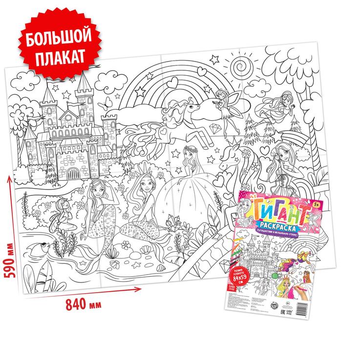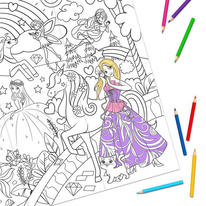 Раскраска гигант «Путешествие в волшебную страну» — это отличная возможность для юных леди весело провести время, развивая моторику и фантазию.