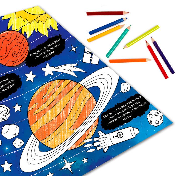 Раскраска гигант «Солнечная система» — это отличная возможность для детей весело провести время, развивая моторику и фантазию.
