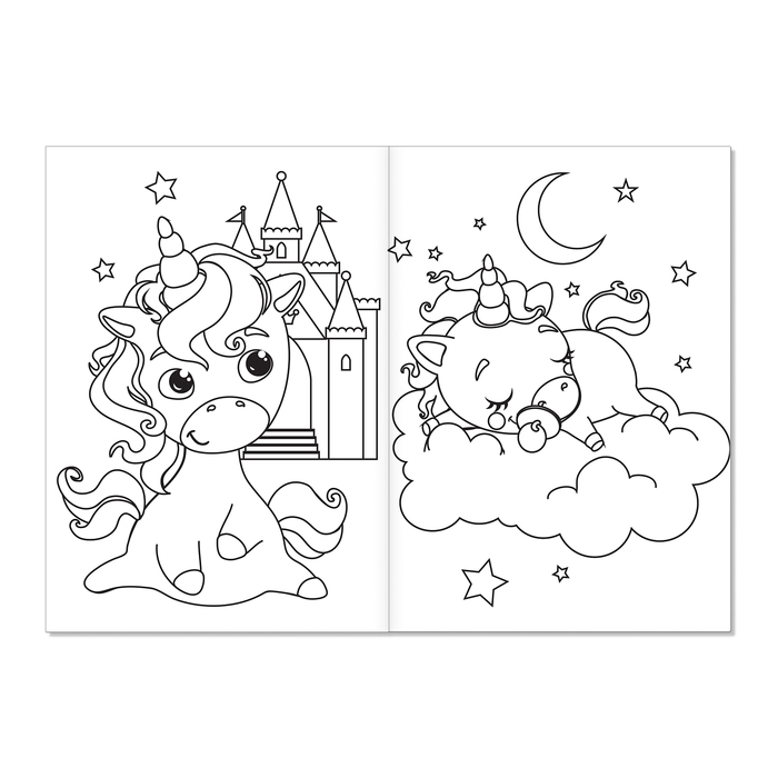 Раскраска создана специально для маленьких принцесс, которым нравятся сказочные животные.