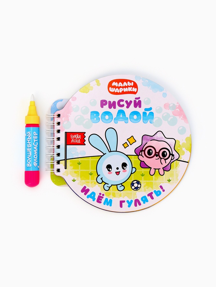 Водная раскраска «Рисуй водой. Идём гулять!» — это увлекательное занятие для детей, которое можно использовать снова и снова. Раскраска выполнена в форме круглого облачка, её 10 страниц соединены удобной пружинкой, а в комплект входит водный маркер. Это идеальный выбор для творческого досуга дома или в дороге.