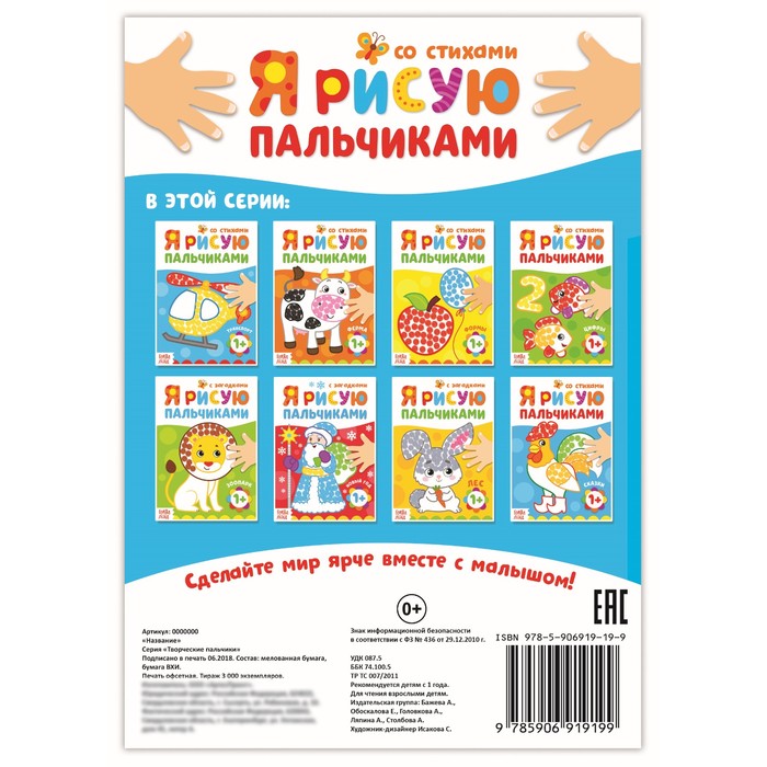 Рисование пальчиками — это простой и весёлый способ познакомить малыша с миром красок. Ребёнок учится выражать свои эмоции через творчество, развивает координацию движений и фантазию. Красочные картинки и задания вдохновляют на создание собственных шедевров, а мягкая обложка делает книгу удобной для маленьких художников.